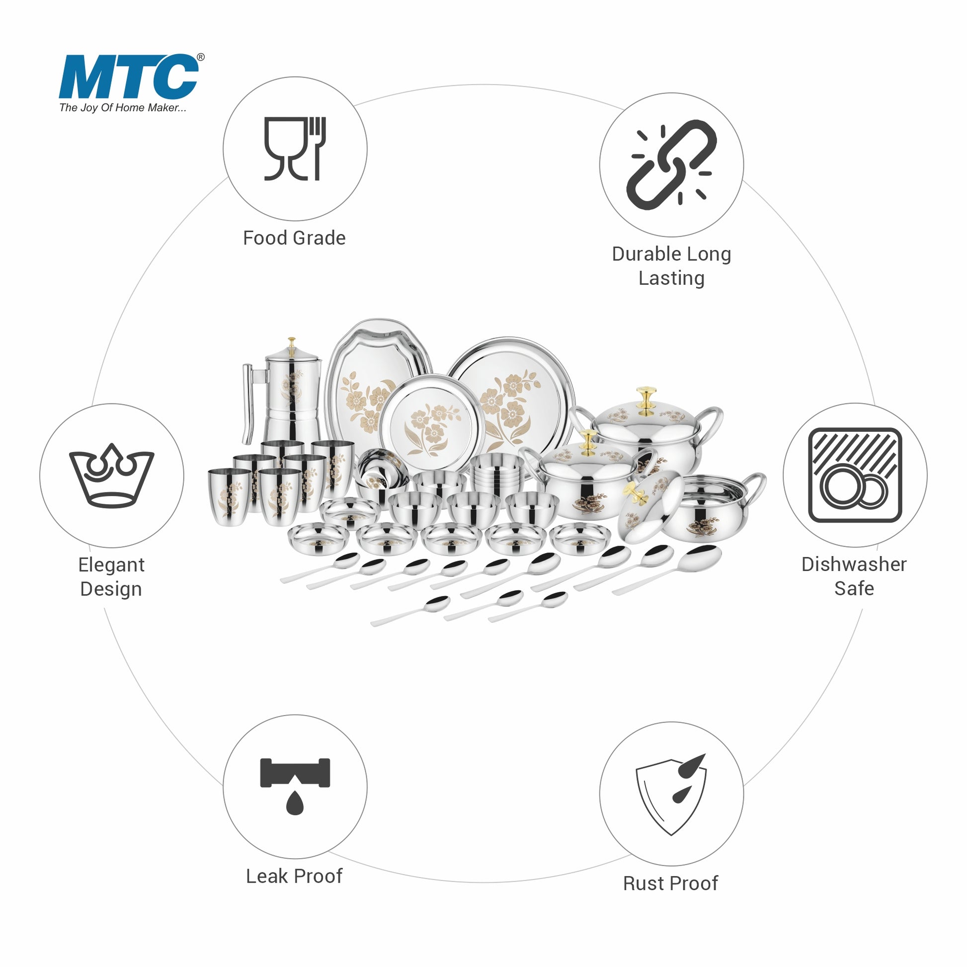 Make weddings unforgettable and Shagun ceremonies extraordinary with a stainless steel dinner set that showcases your thoughtful and elegant choice. Whether as a wedding gift or for a traditional Shagun ceremony, these sets symbolize timeless taste and practicality.