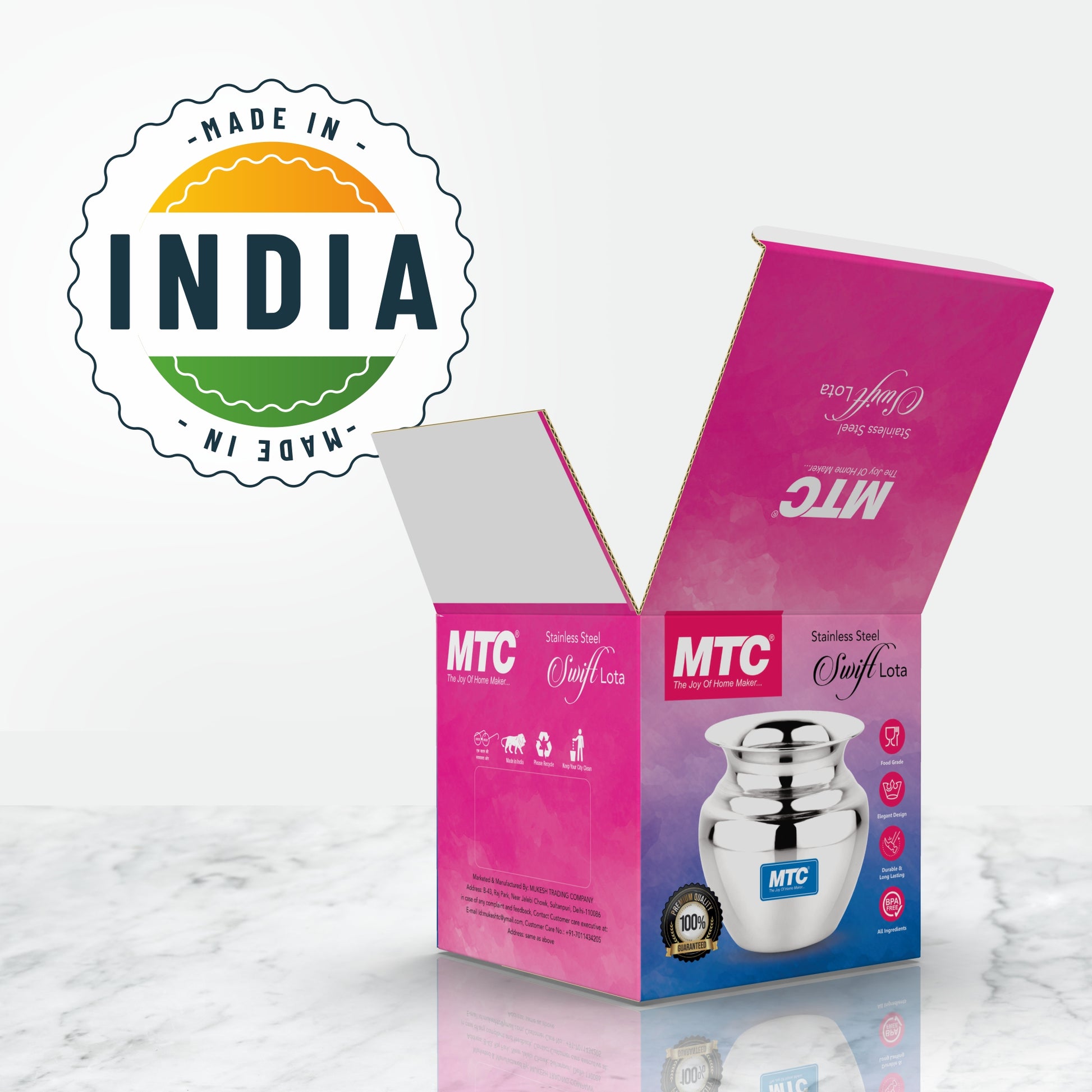 - Big Lota Dimension: 10x10x10.5 cm (LxBxH), Weight: 190 gm,Small Lota Dimension: 8.5x8.5x11 cm (LxBxH), Weight: 130 gm
