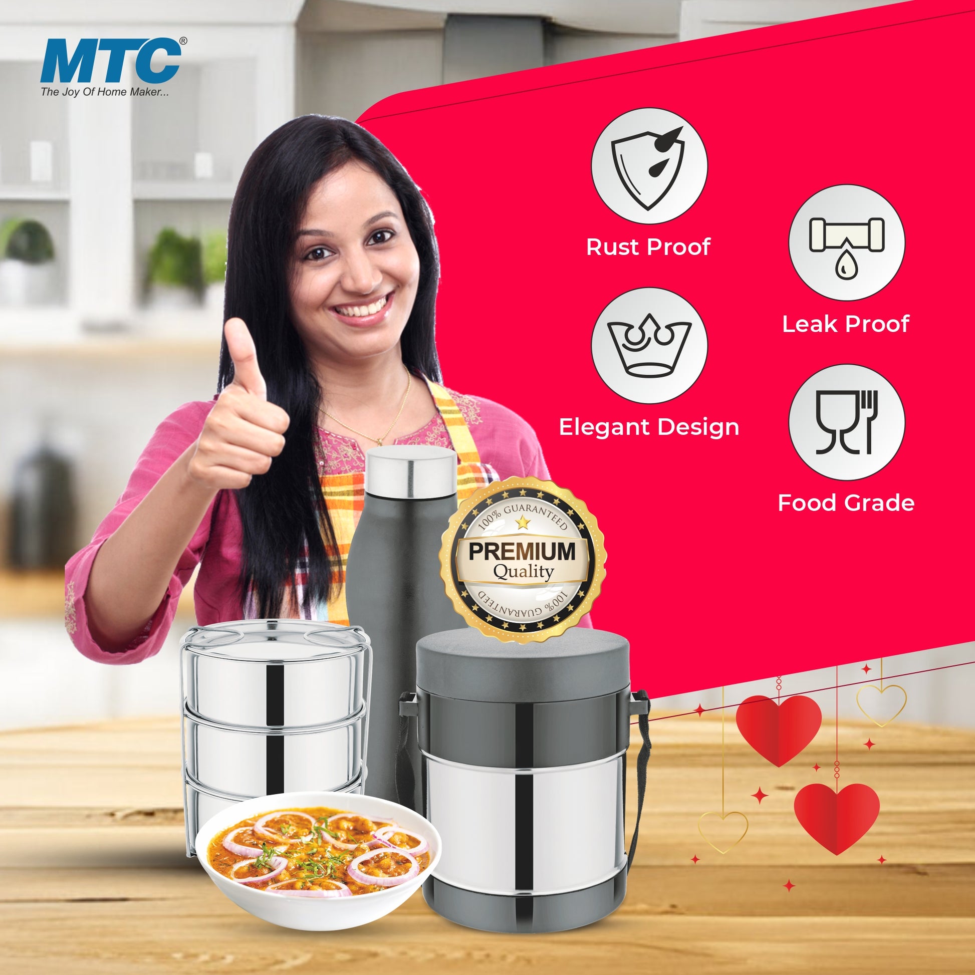 This Hot Lunch box and Bottle Gift Pack Combo is perfect for busy professionals and students. The Puff-Insulated, spill-proof Stainless Steel containers keep food and beverages fresh and crisp for hours. The BPA-free design ensures spill-free use while the Steel Water Bottle (750ml) is easy to carry on-the-go.