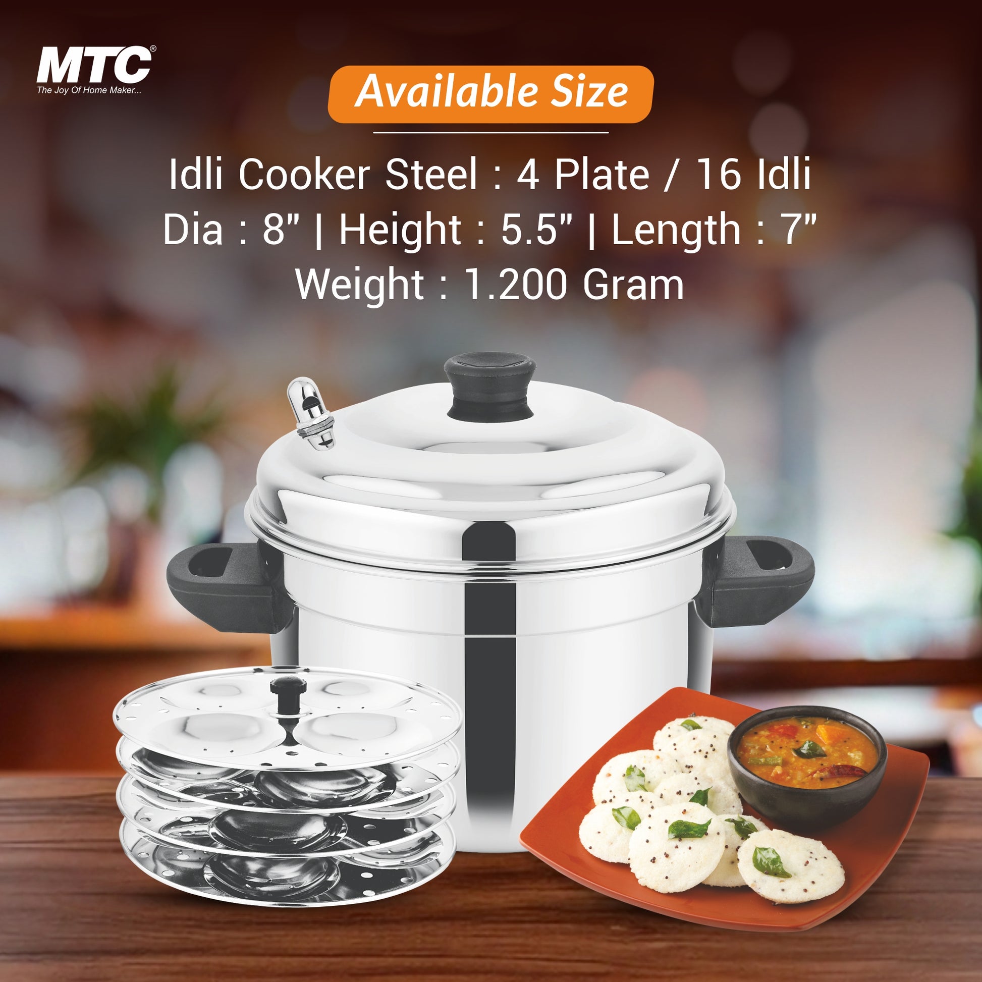 MTC Stainless Steel Idly Maker 4 Plates Compatible with Induction and Gas Stove