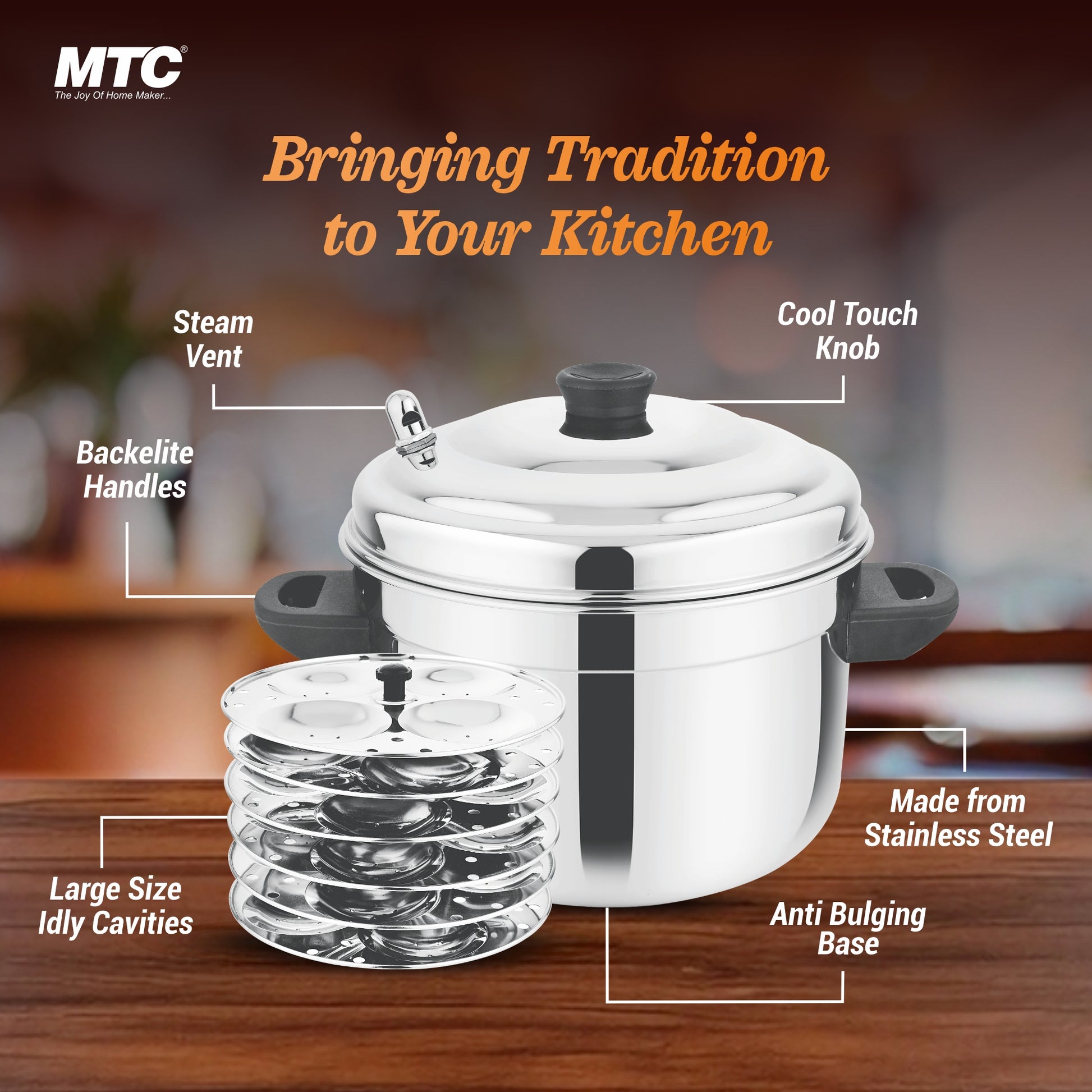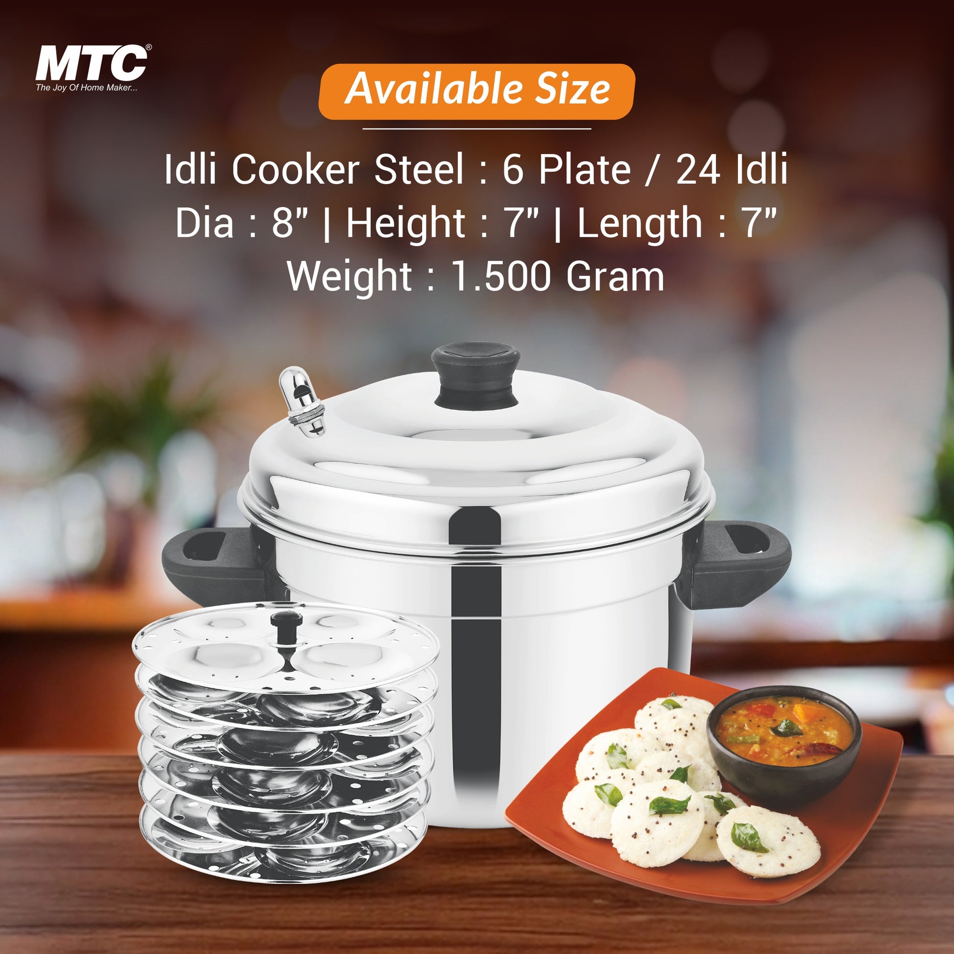 MTC Stainless Steel Idly Maker 6 Plates Compatible with Induction and Gas Stove